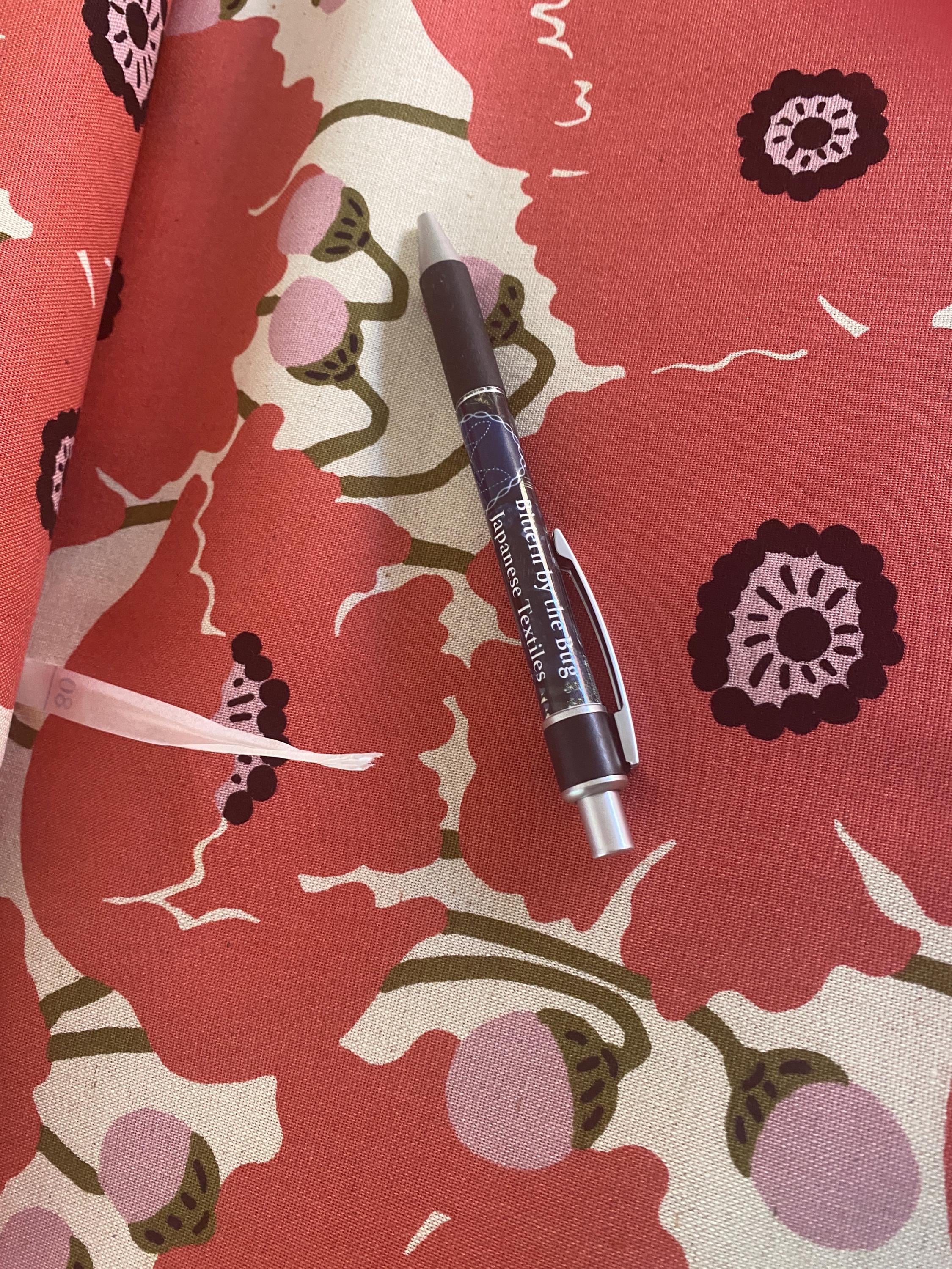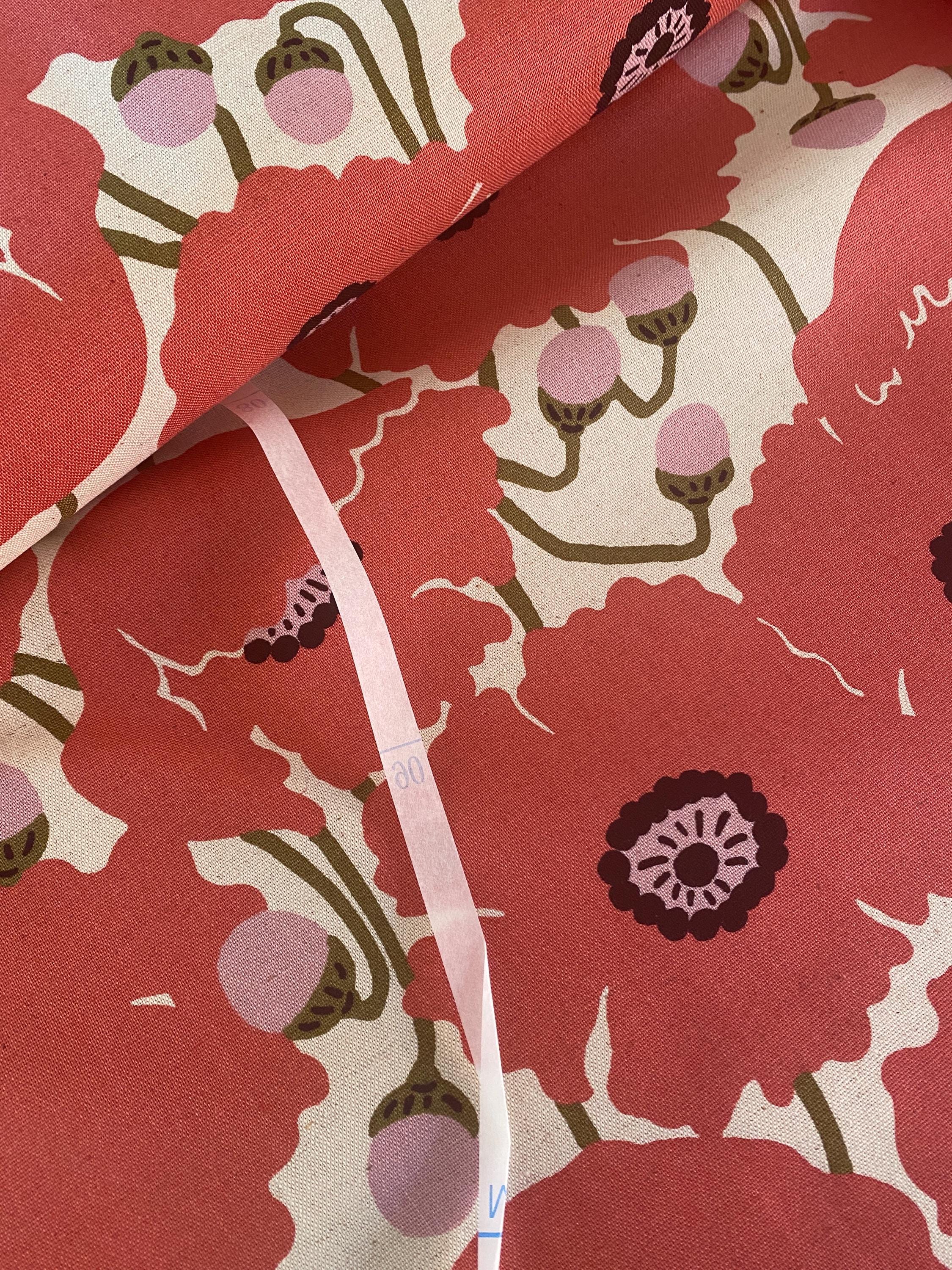 Genuine high quality Japanese Linen/Cotton fabric from Japan covered with large pink poppies on a neutral ecru background with paler pink buds