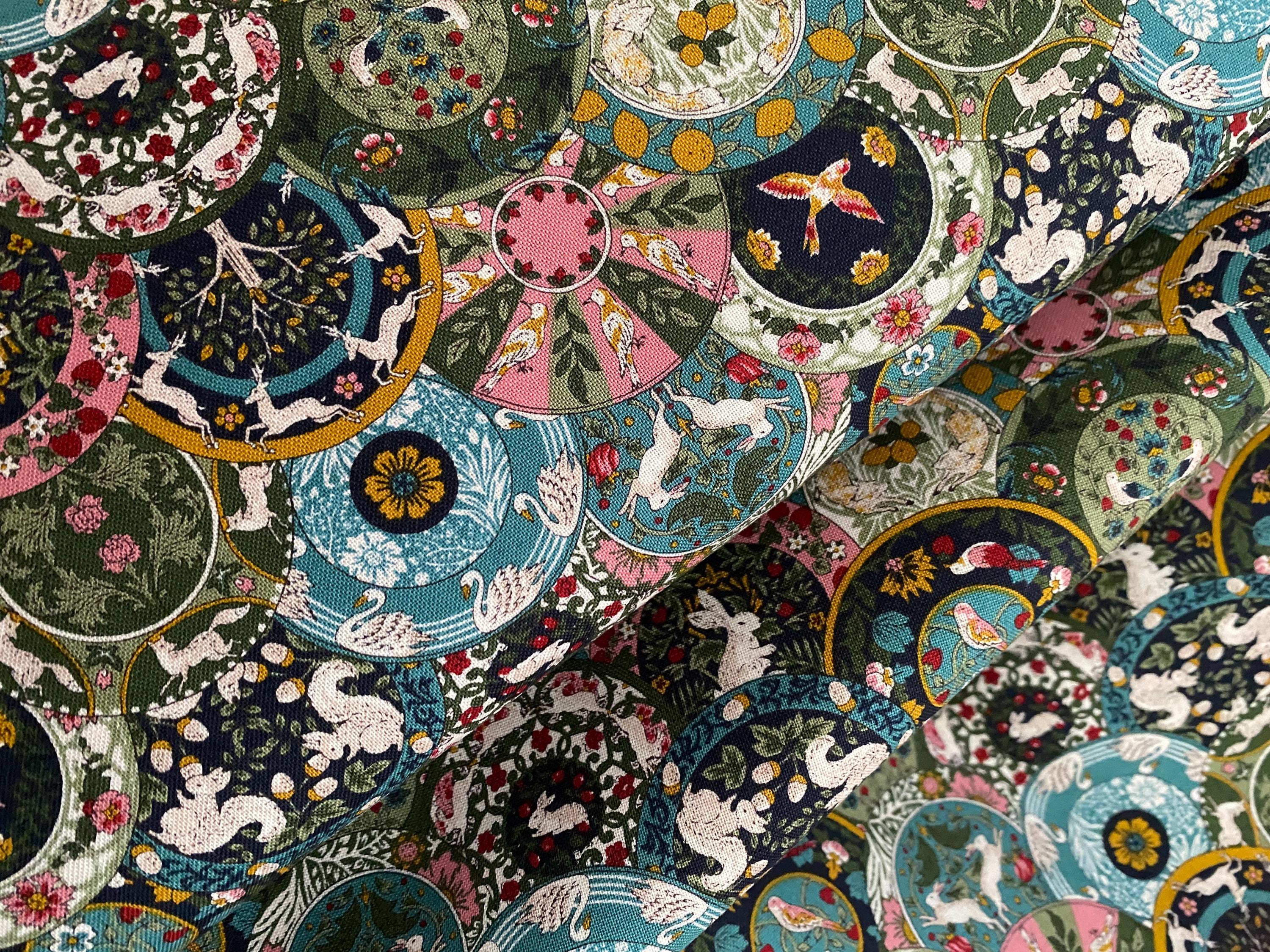Woodland animals in a Patchwork design pattern with Green shades from the Art Nouveau Symphony Woodland series.