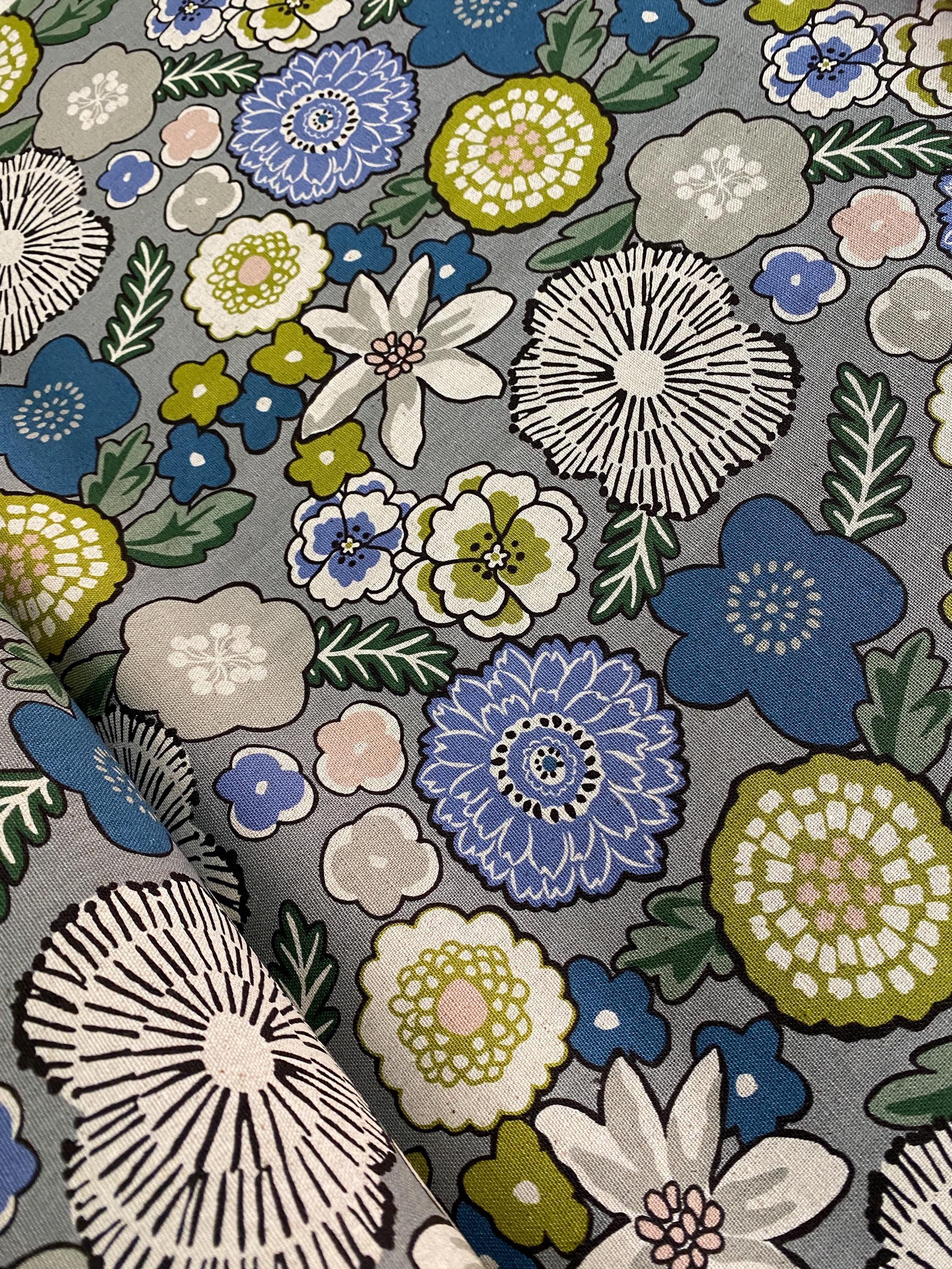 Flowers colour burst - Grey background - Japanese Linen/Cotton - fabric by the 1/4mtr