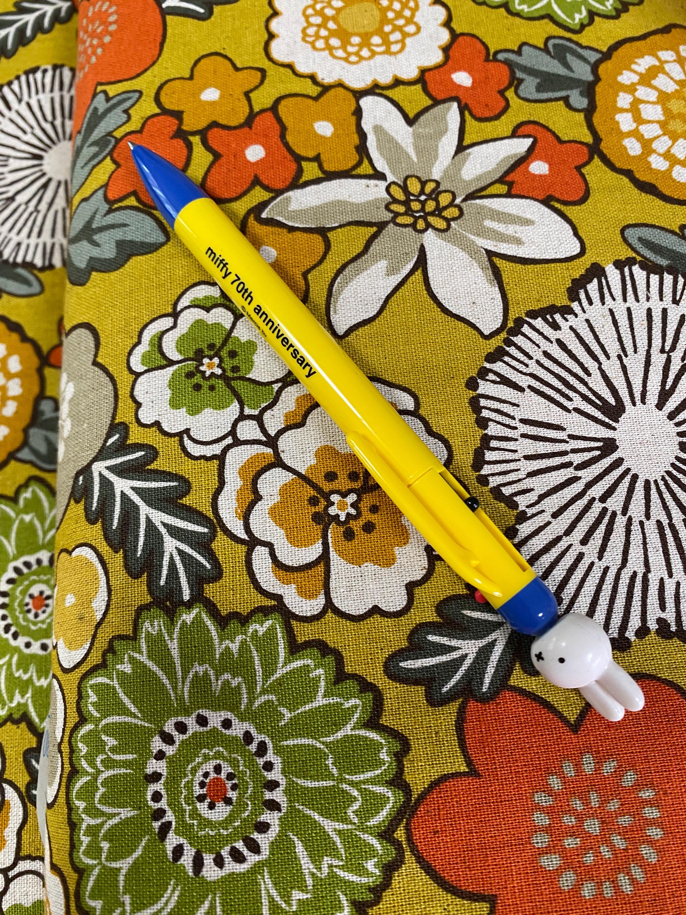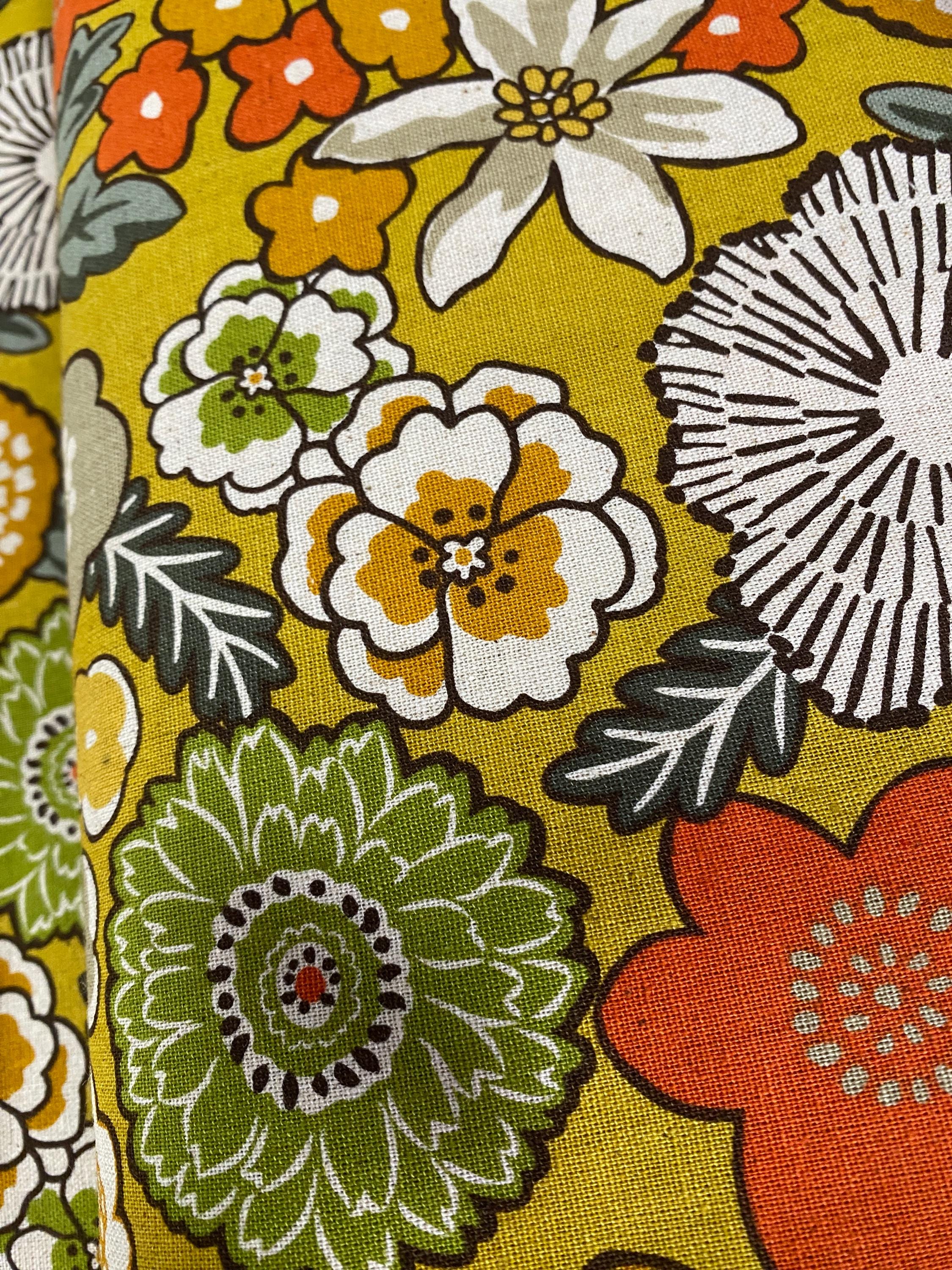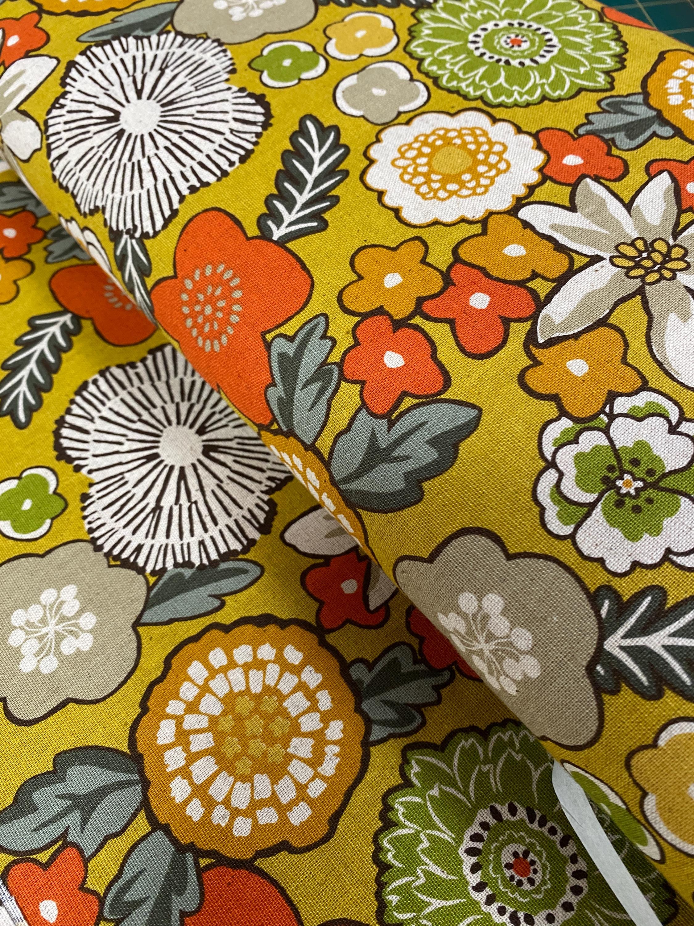 Flowers colour burst - Mustard background - Japanese Linen/Cotton - fabric by the 1/4mtr