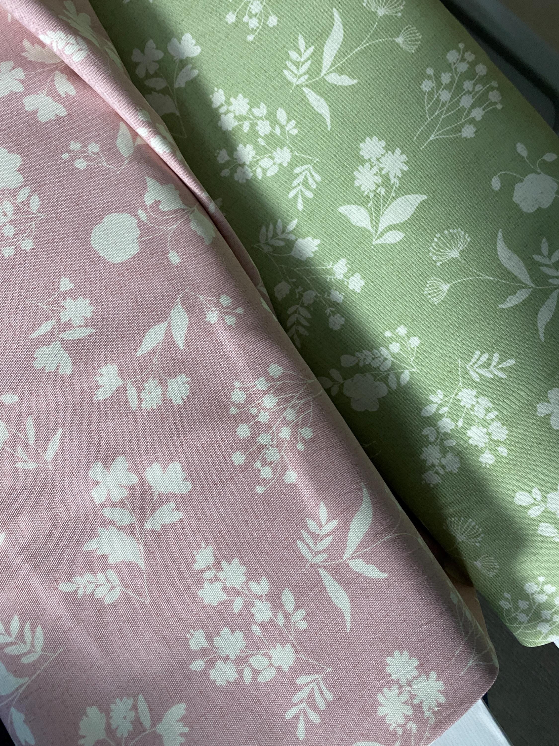Peaceful flowers - Ecru on Green background - Oxford Cloth - 150cm wide - fabric by the 1/4mtr