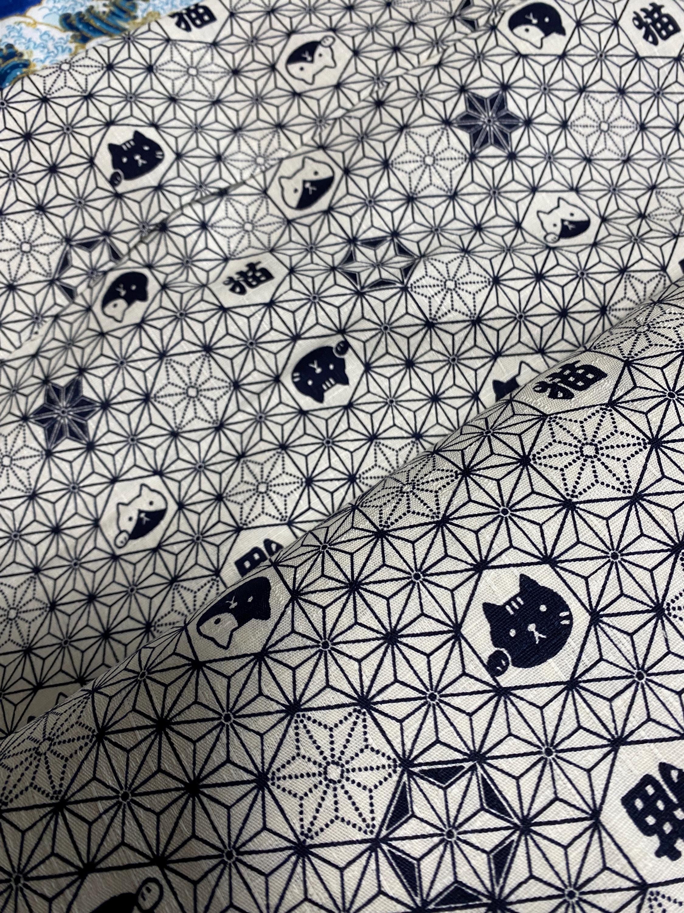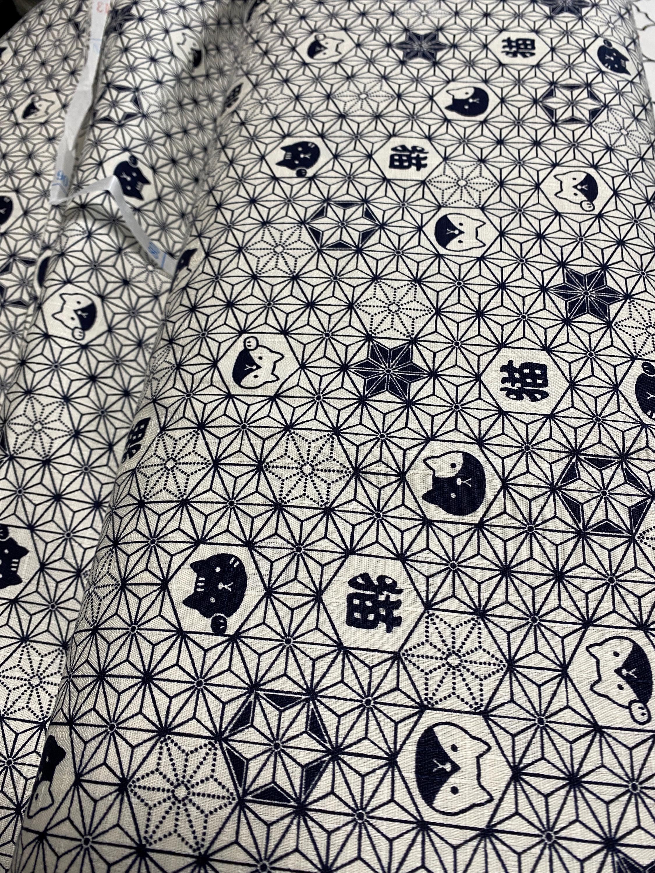 black cats and Asanoha cover this white fabric