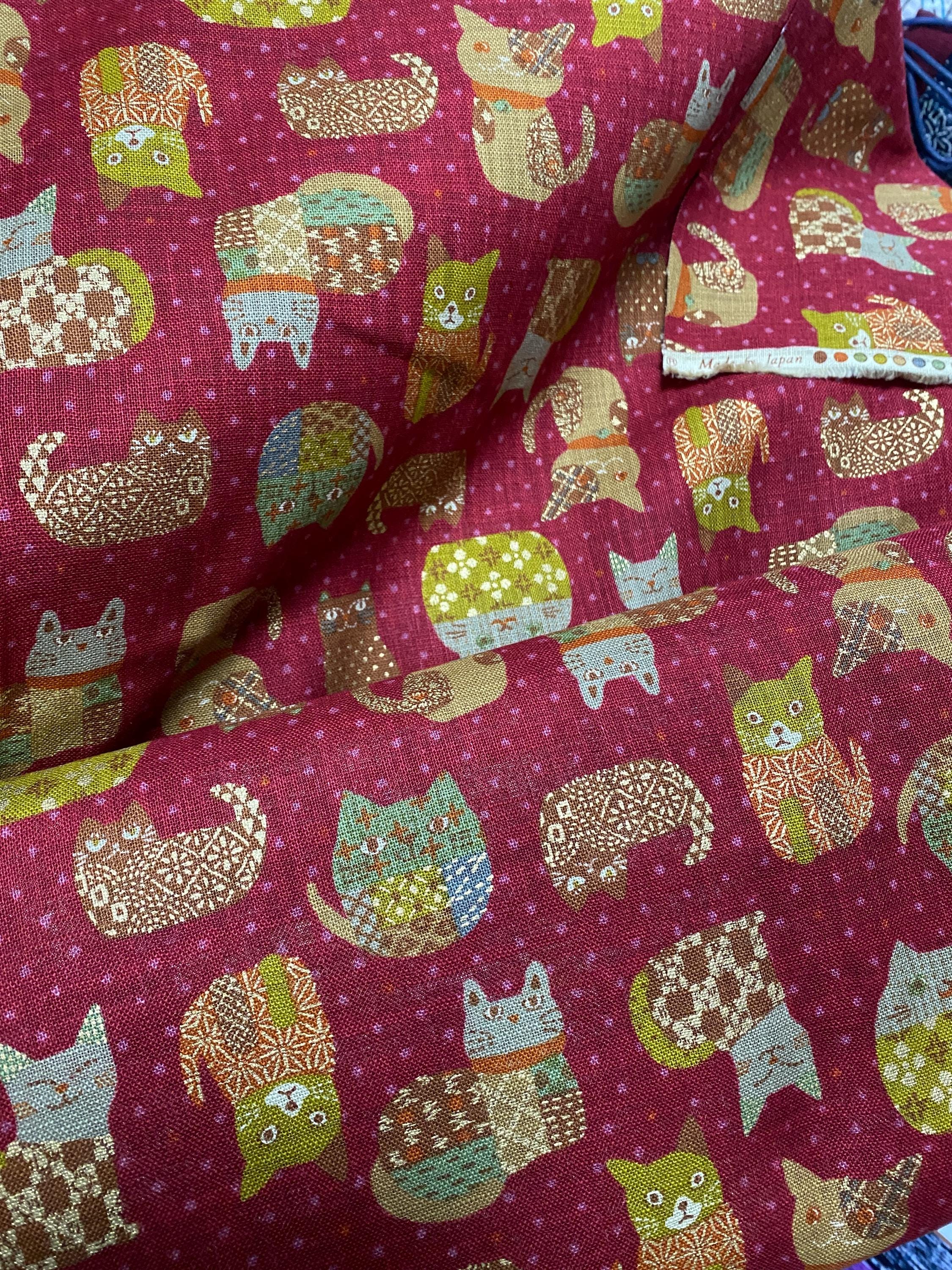 rows of cats with gold highlights on a rich red background