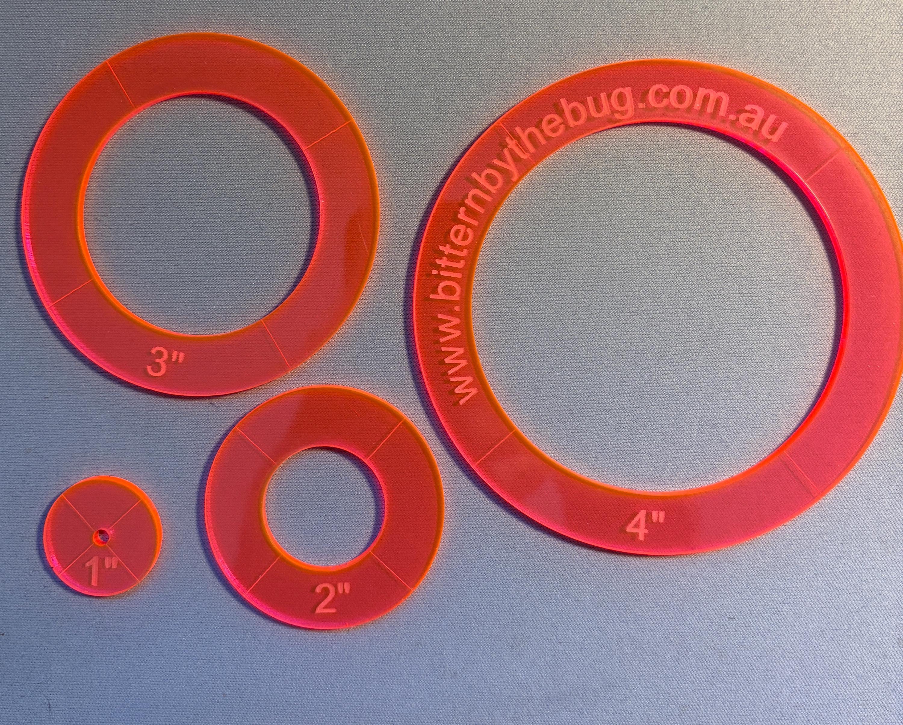 Set includes 5 donut templates: 1, 2, 3 & 4 inch.