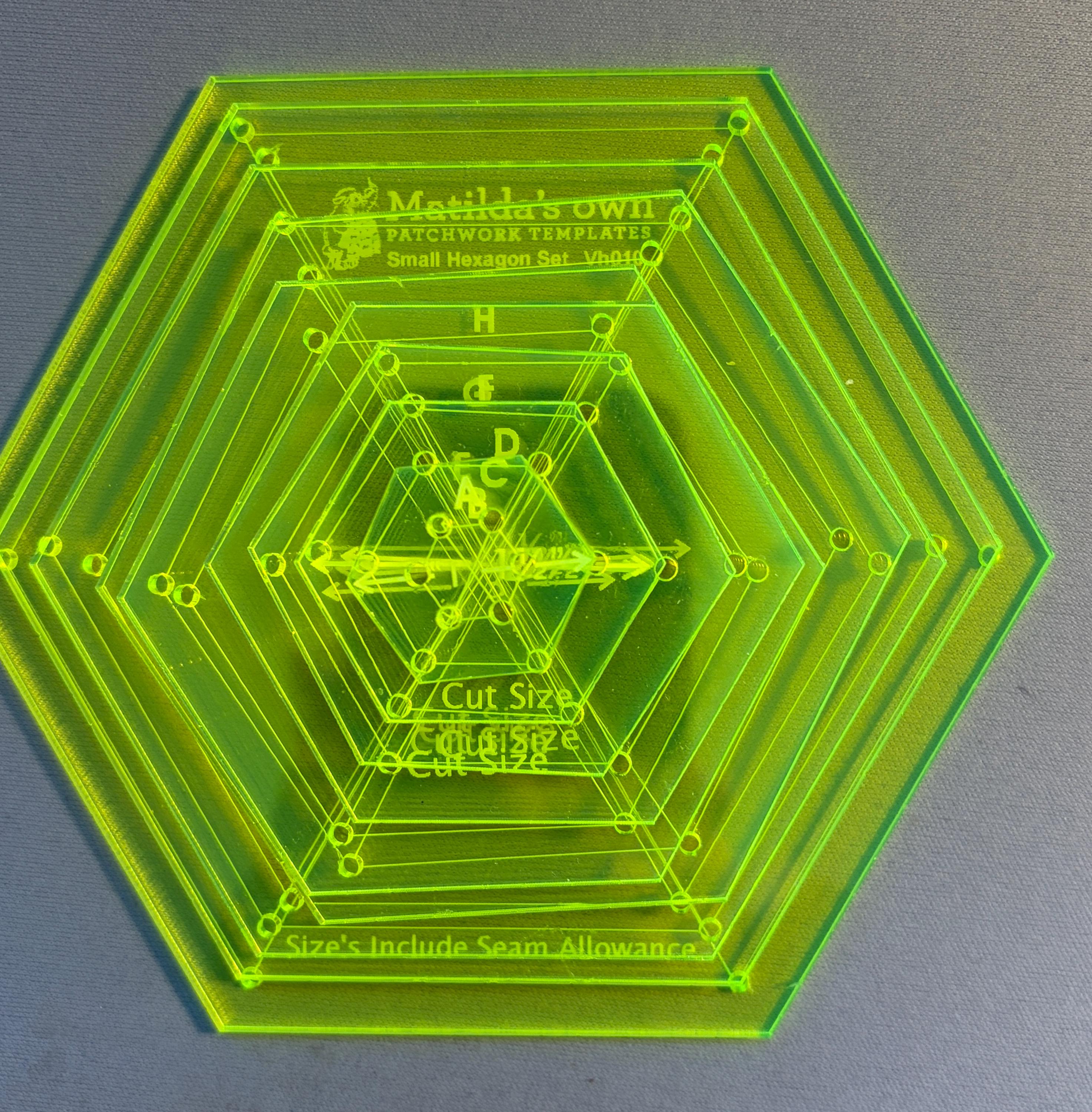 Hexagon templates in various sizes. Useful for Patchwork and quilting