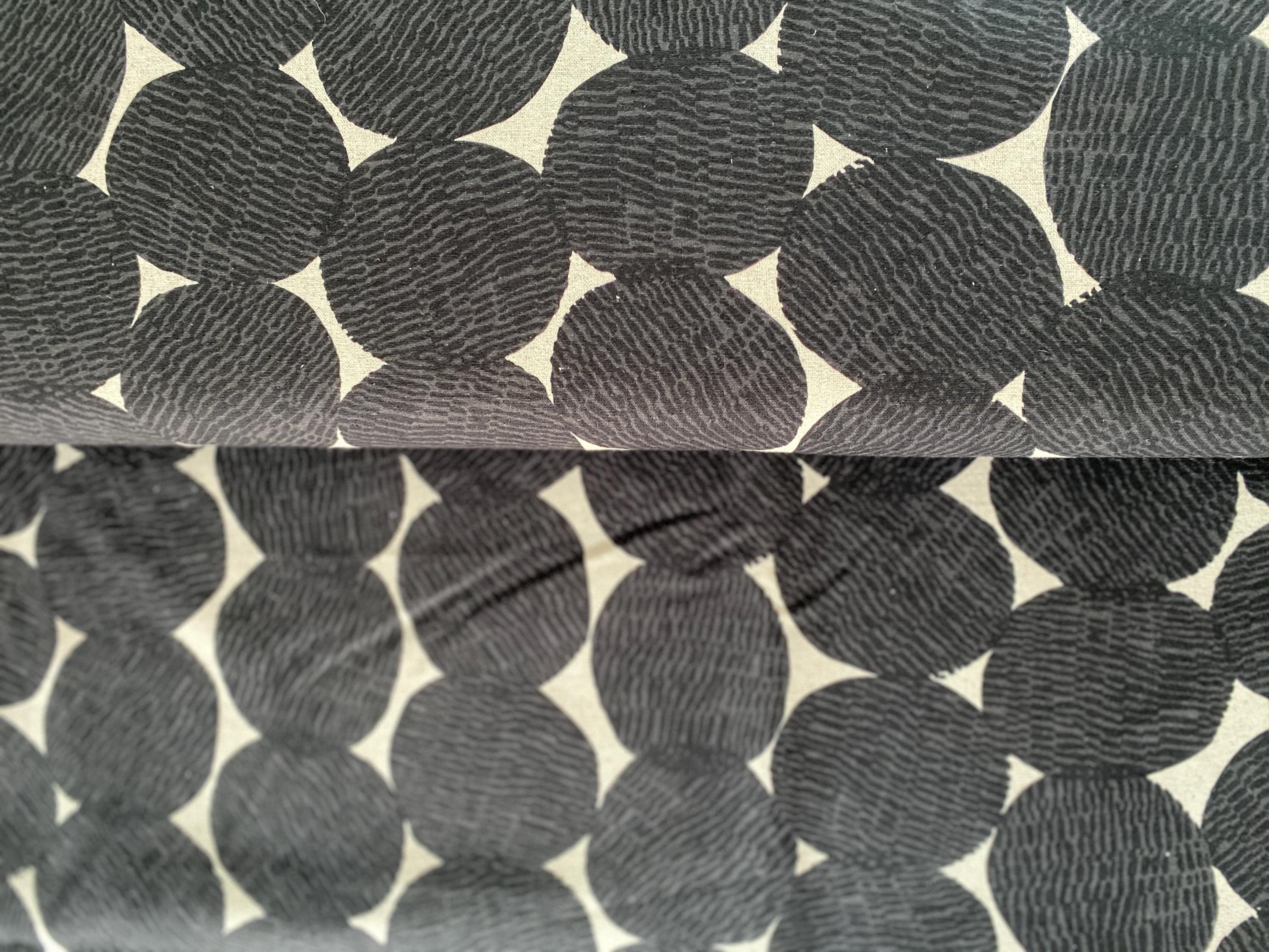 Genuine high quality Japanese Linen/Cotton fabric from Japan covered with large Circles on natural background