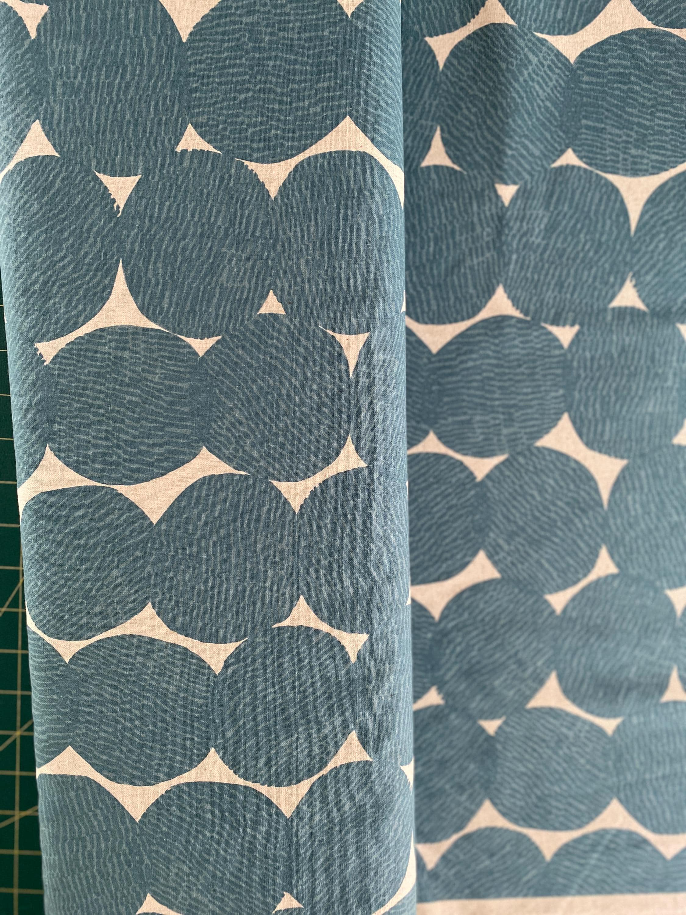 Super Circles - Dusty Teal on Ecru - Japanese Linen/Cotton fabric