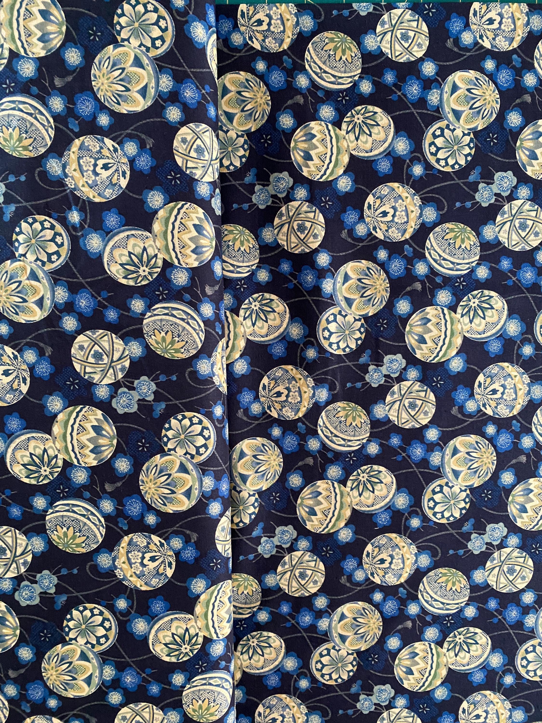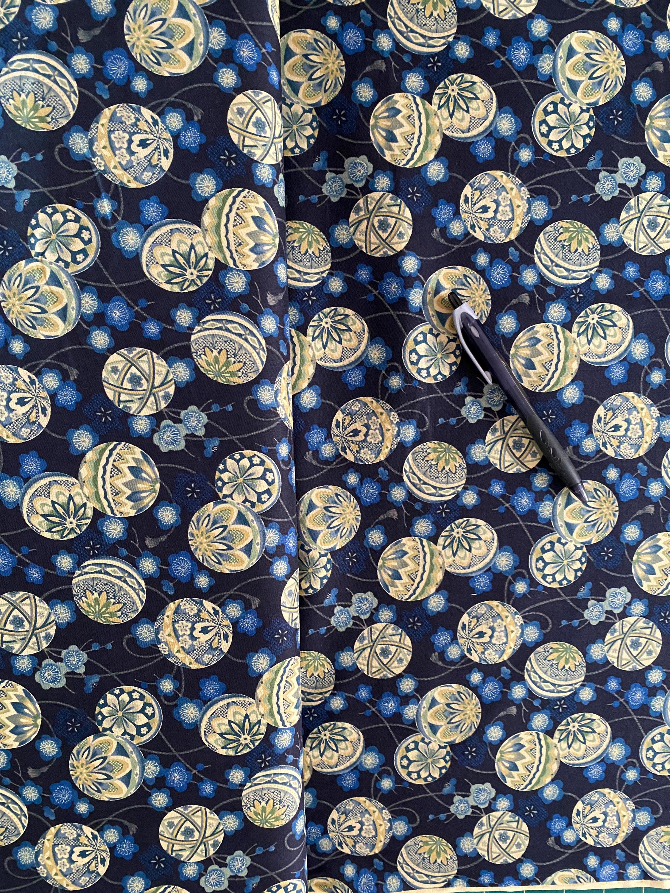 Antique Japan series - tamari Balls - Navy background - Sheeting weight fabric